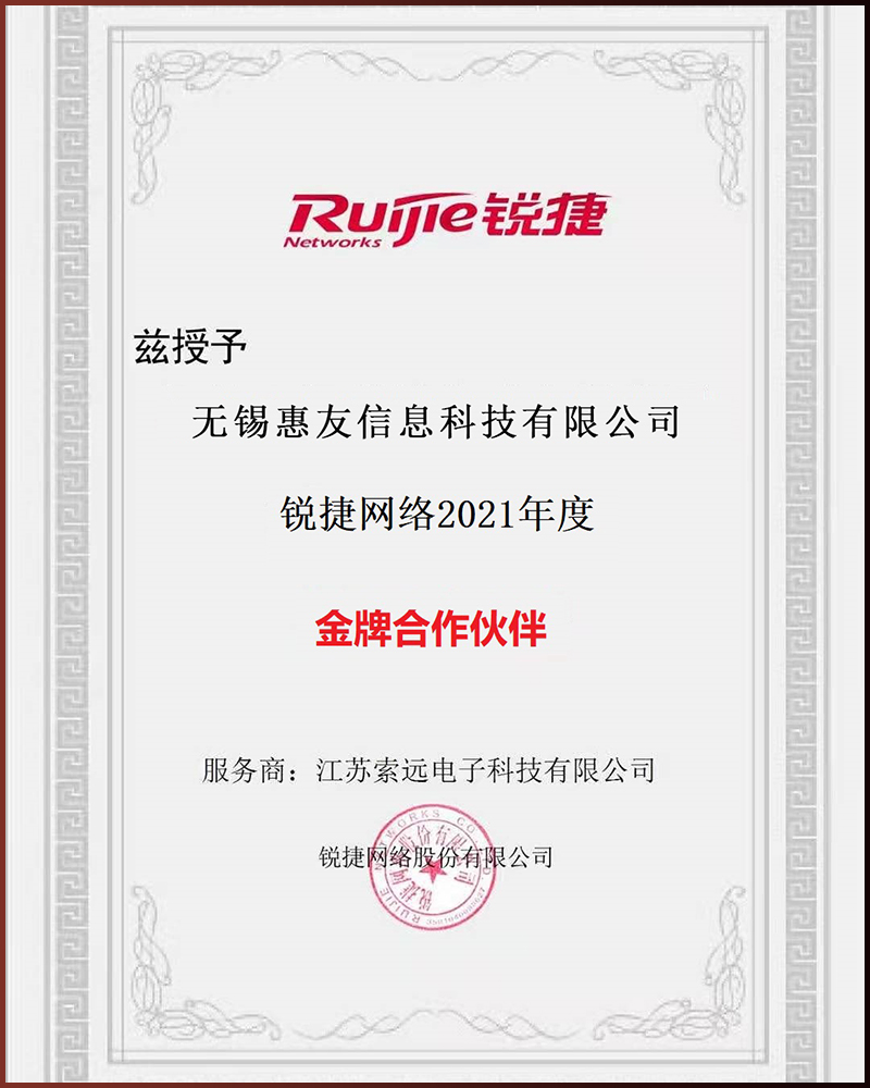 銳捷網(wǎng)絡(luò)2021年度金牌合作伙伴